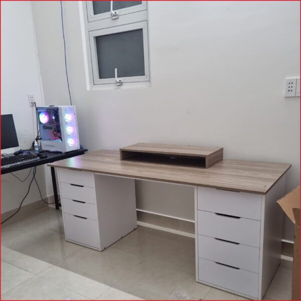 - Mặt bàn cấu tạo 2 mảnh, chất liệu Particle Board P2PB dày 16 mm