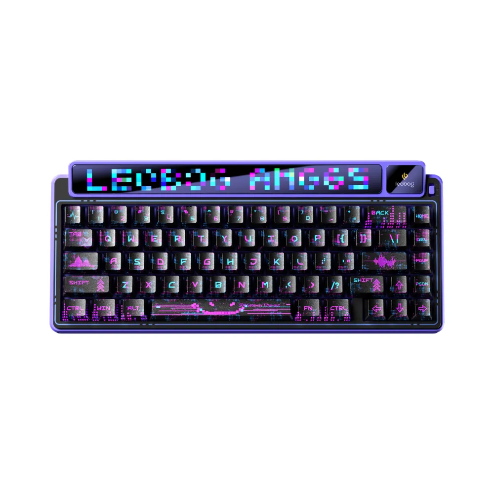 Leobog AMG65 mang đến góc nhìn về một chiếc bàn phím thật sự ấn tượng, layout 65% với 67 phím cực kì nhỏ gọn. Nổi bật với thanh led Dot Matrix ở ngang bàn phím có thể tuỳ chỉnh và màn hình 1,14 inch có thể hiện thị hình ảnh.