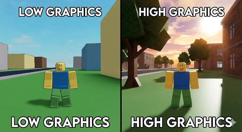 Để trải nghiệm Roblox mượt mà, bật max setting đồ họa (max graphics) mà không lo giật lag.