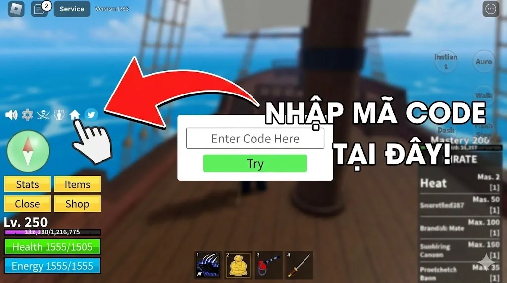 Mẹo nhỏ: Hãy ưu tiên sử dụng các Code x2 EXP khi bạn chuẩn bị farm quái hoặc đánh boss để tối ưu thời gian lên cấp.