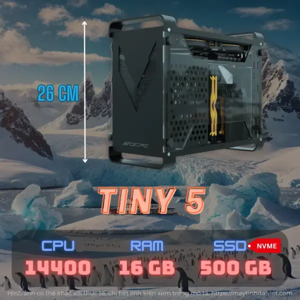 PC Văn Phòng Tiny 5 Nhỏ Gọn (iTX 22cm x 31cm, i5-14400, 16GB, 512GB)