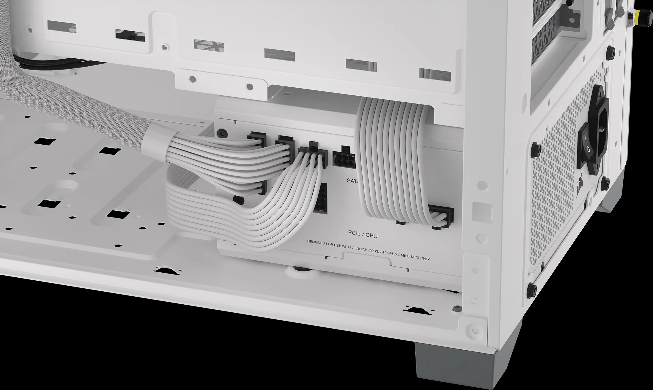 Điểm nổi bật nhất của RM1200x Shift White chính là thiết kế SHIFT độc quyền: toàn bộ cổng cắm dây được đặt bên hông thay vì phía sau. Thiết kế này giúp bạn dễ dàng kết nối dây, quản lý gọn gàng, đặc biệt phù hợp với các thùng máy có tấm che PSU hoặc không gian hạn chế.