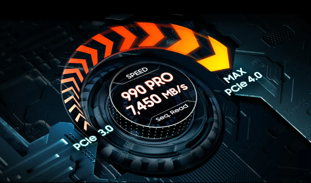 Tăng tốc vượt bậc chạm đỉnh 990 PRO với tốc độ đọc/ghi tuần tự lên tới 7,450/6,900 MB/s, gần đạt hiệu suất tối đa của PCIe® 4.0 - Nhanh hơn 40% và 55% tốc độ đọc/ghi ngẫu nhiên so với 980 PRO 2TB, lên tới 1,400K/1,550K IOPS, trong đó tốc độ đọc ngẫu nhiên 4TB thậm chí còn cao hơn khi lên tới 1,600K IOPS.