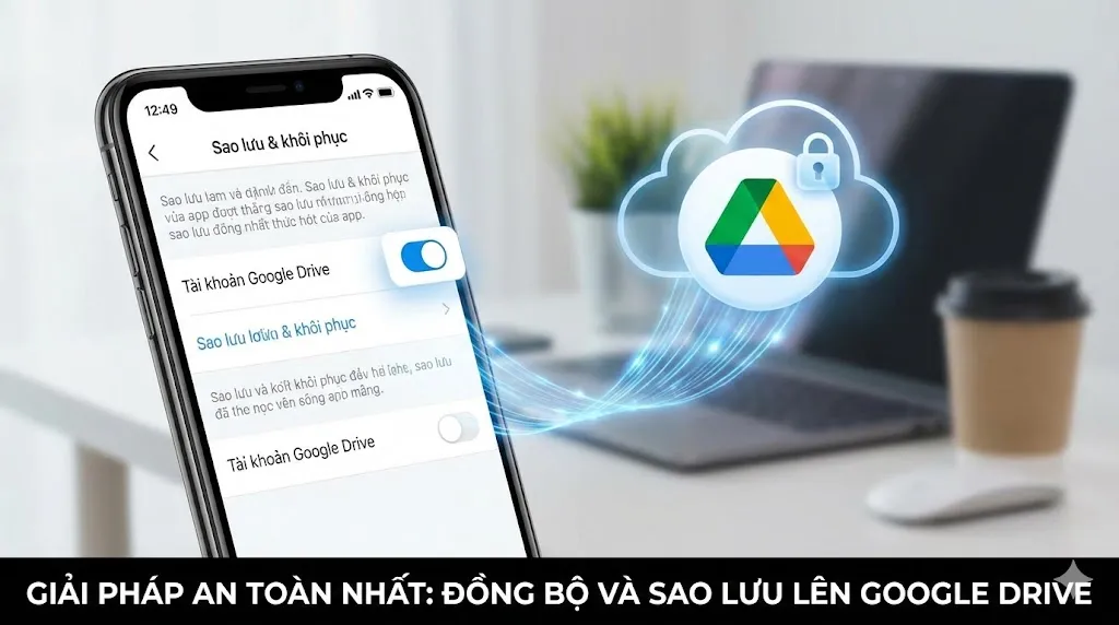 Cách 2: Đồng bộ và Sao lưu lên Google Drive (Giải pháp An toàn nhất)